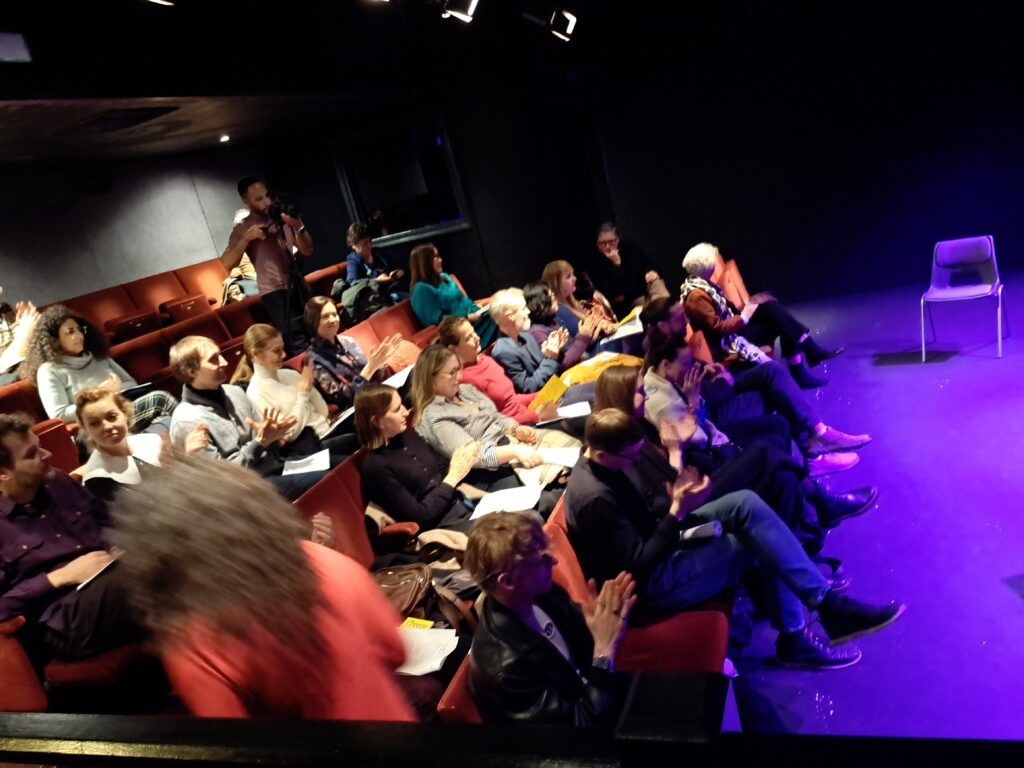 Ettelugemistele järgnes aruteluring, kus moderaatorid Nastazja Domaradska ja Margherita Laera esitasid autoritele ja tõlkijatele küsimusi nende töö spetsiifika, aga ka Eesti teatrikultuuri kohta. Välisriikide külastades on alati võimalik lüüa inimesi pahviks meie teatristatistikaga – umbes 1.3 miljoni elanikuga riigis umbes 1.3 miljonit teatrikülastust. Kui olime maininud seda, siis järgnesid küsimused laiemalt teatrisüsteemi ning -rahastamise kohta. Et nii väikeses riigis on sellises mahus teatrite rahastus, tõi samuti kuulajate seas esile tugevalt tunnustavaid reaktsioone, kuna Suurbritannias võib nii lahkest teatrite rahastamisest vaid unistada. See on midagi, mille üle peame olema uhked ja mille säilimisse peame panustama nii teatritegijate kui liiduna.